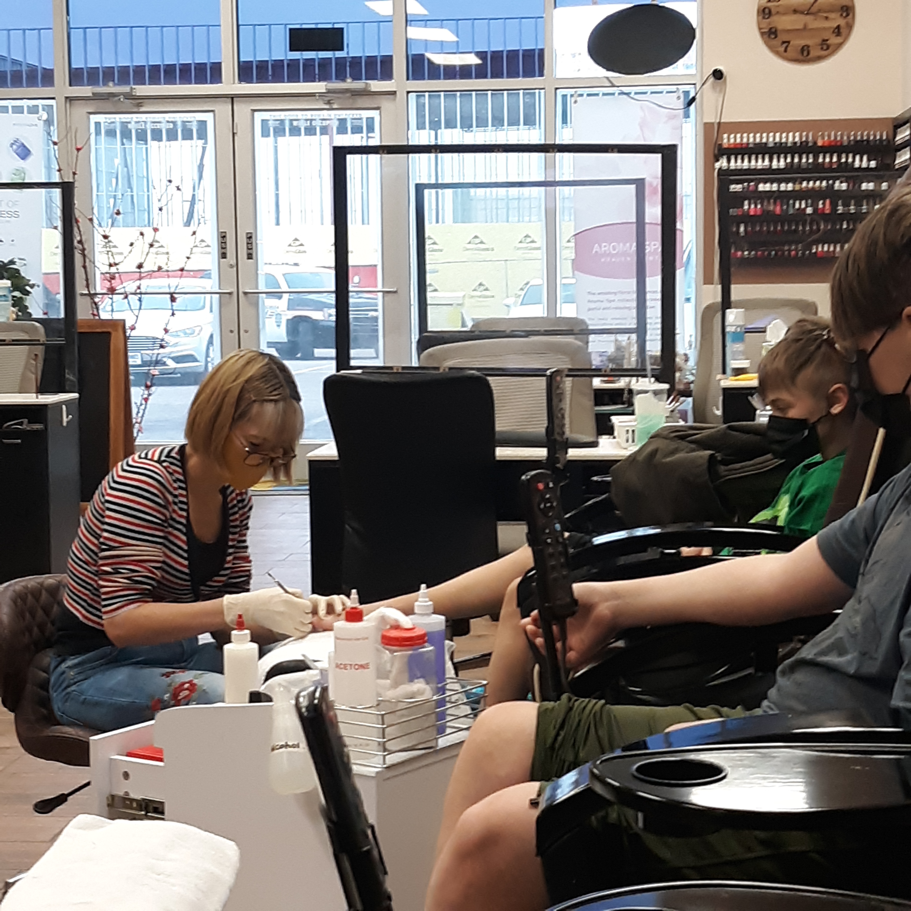 Second, we all went to get pedicures. Our youngest was a little hesitant about it at first but ended up being so relaxed by it, he almost fell asleep in the massage chair while they massaged his feet. Our older son was super excited, as he has problems with in-grown toenails and has been having a lot of pain in his fast-growing feet. My husband has had several pedicures and loves them every time, so this was nothing new for him.